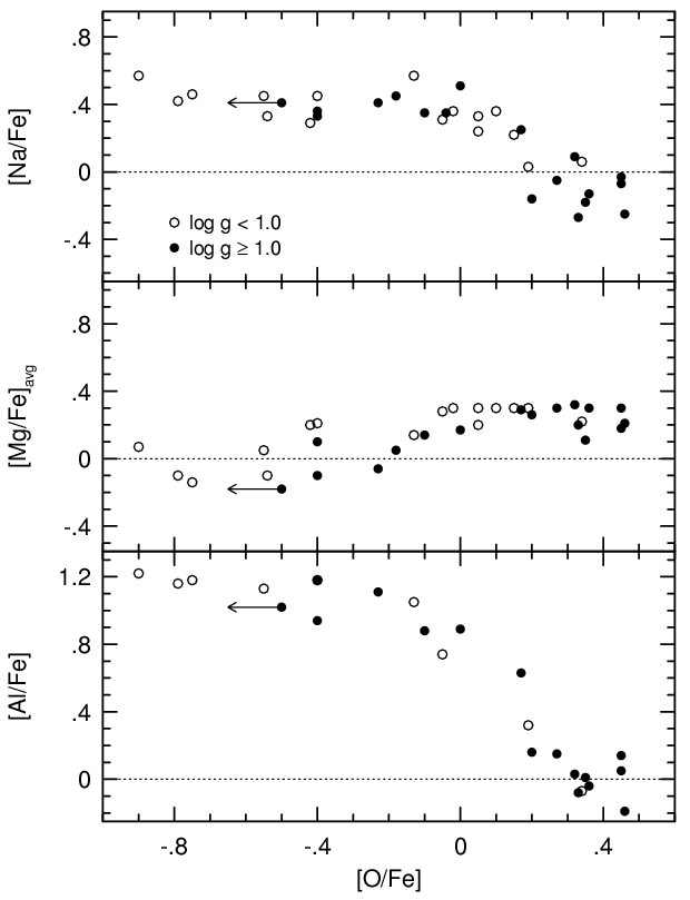 small abundances of Na and Al, while other stars will show the opposite
